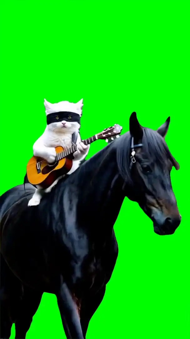 Cat playing guitar in riding horse green screen